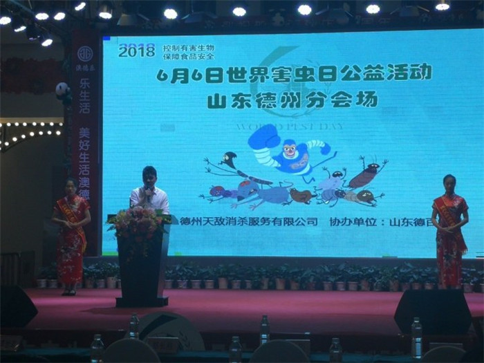 6月6日為世界害蟲(chóng)日。6日上午,2018德州世界害蟲(chóng)日公益宣傳暨有害生物防制與食品安全活動(dòng)在澳德樂(lè)舉行。本次活動(dòng)由德州天敵消殺服務(wù)有限公司主辦,旨在為喚起更多人對(duì)害蟲(chóng)防制事業(yè)的關(guān)注,讓科學(xué)的害蟲(chóng)防制理念深入人心。
