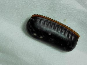蟑螂卵1、卵期 卵呈窄長形,乳白色,半透明,在卵鞘中排成整齊的兩列。胚胎頭向孔縫。孵化時,若蟲向上頂,使閉合的卵鞘縫裂開而逸出。卵鞘中含卵數,少則幾粒,多則達50多粒。卵鞘在溫度25℃,相對溫度60—80%條件下孵化,卵期約28—90天。