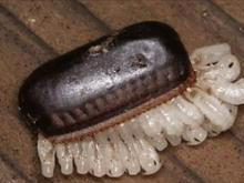 3、雌蟲先產出壁薄而柔軟的卵鞘,產卵在其中。產卵完成后,卵鞘又收縮進體內的“育室”中,一直保持到若蟲孵出。這是蟑螂卵胎生的一種形式。蔗蠊的產卵方式屬于這一類型。